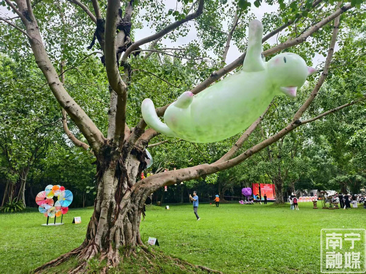 在这里,艺术不再是远观之物,而是可感、可玩、可共情的城市伙伴。游客们可以走进《织梦森林》,在彩色网纱编织的光影中穿行;可以在《桩间忆溯》的树洞信箱投递心情,让思绪成为艺术的一部分;还可以寻找枝头《小憩》的猫咪,或在《风·声》旁驻足,聆听自然的细语。