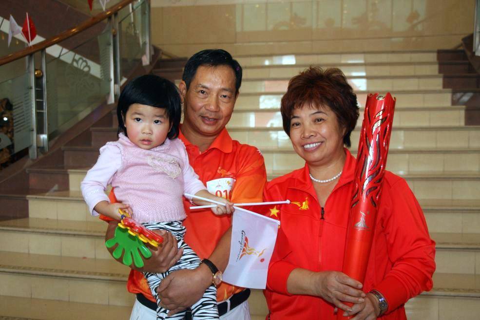 叶德林与夫人李要携小孙女分享其个人被拥戴为第十六届亚洲运动会火炬手的荣耀