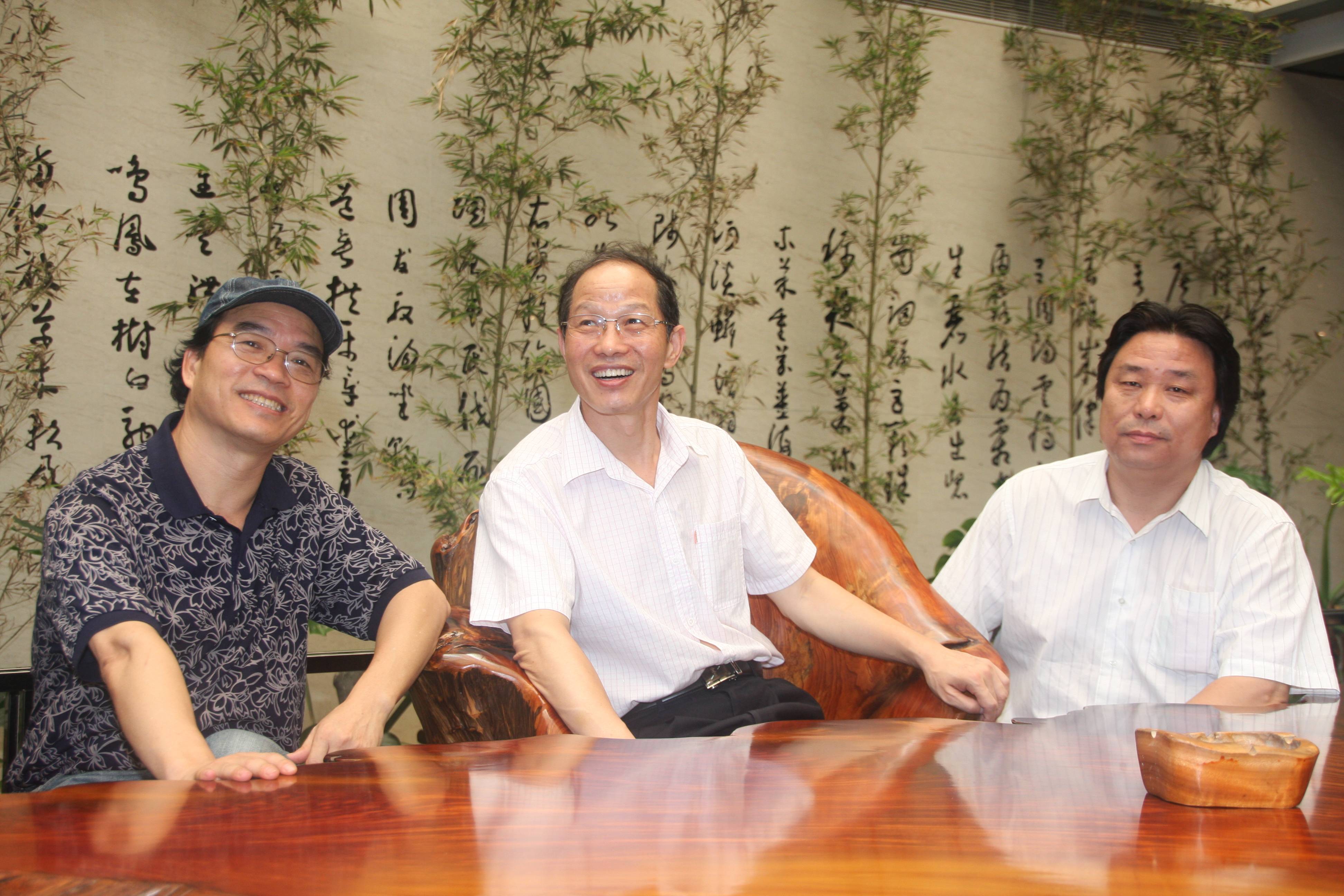 本书作者黄康俊(左)、经济管理出版社长张世贤(中)、副社长勇生(右)冠珠陶瓷大展厅