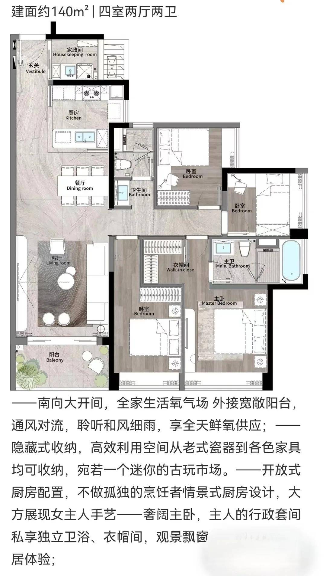 【建面约140㎡四房】双版本设计,横厅版6.8米南向面宽,竖厅版三卫生间配置