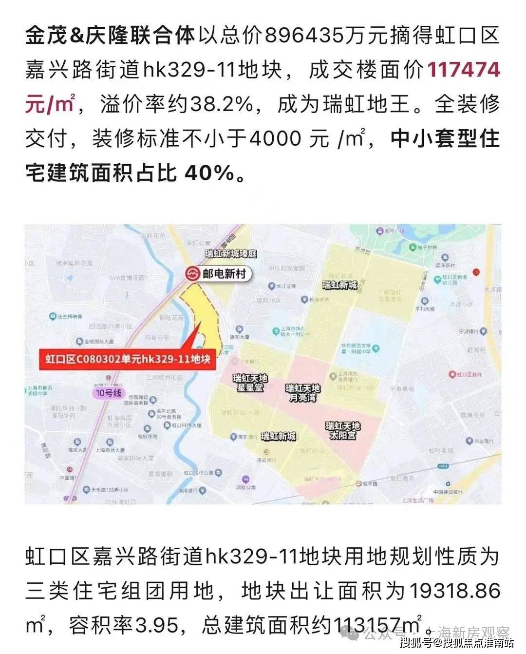 最新消息!上海2025年首个地王“瑞虹地王”金茂+庆隆瑞虹项目正式定名「金茂·璞元」首开售罄,二批次加推约126-170㎡3-4房;均价16.8万/㎡!认购金206万!认购时间:10月21日-10月24日!2000-3000万买房必看!实景示范区现已开放,预约接待!约1700平奢享会所+1F架空层泛会所!