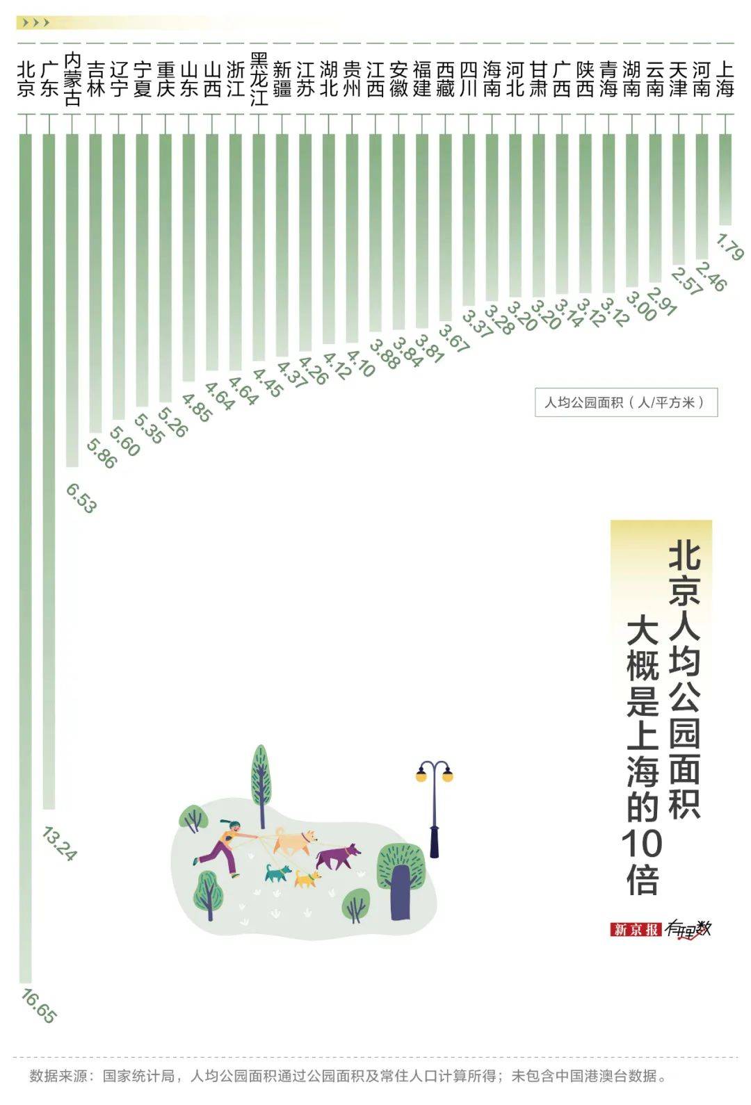 皇家园林的续费套餐,颐和园和圆明园分别三百多公顷的面积直接拉高均值,网友调侃“把北海公园搬去南方能拆成50个社区公园”。