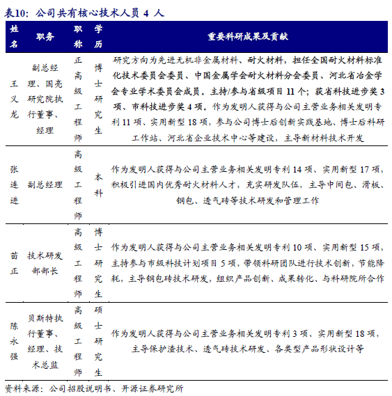 2025年4月河北省人民政府授予公司“2024年度河北省优秀民营企业”称号;公司亦被认定为国家级专精特新“小巨人”并于2025年8月入选重点“小巨人”名单、“河北省专精特新中小企业”、“河北省企业技术中心”、“河北省科技型中小企业”、“河北省制造业单项冠军(镁碳砖)”;公司于2020年获人力资源和社会保障部批准设立“博士后科研工作站”,是业内建有博士后科研工作站的企业之一。公司与中国科学院过程工程研究所、北京科技大学、武汉科技大学和华北理工大学等院校开展合作,积极探索耐火材料行业新材料、新工艺、新技术。