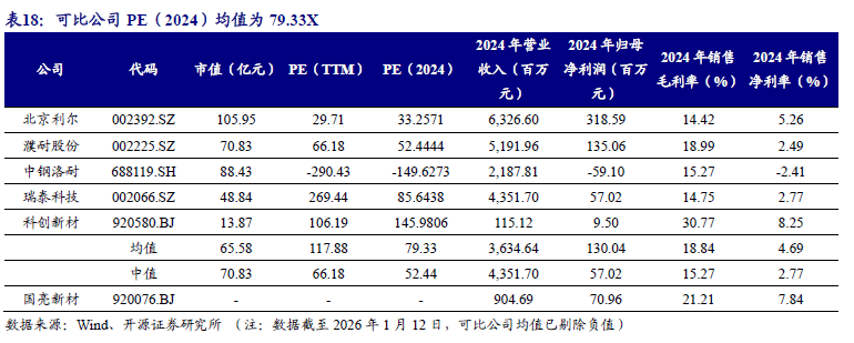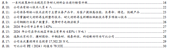 公司是业内知名企业,积极参与行业建设,目前为中国耐火材料行业协会第九届理事会会长单位、河北省耐火材料行业协会会长单位,公司董事长董国亮先生担任中国耐火材料行业协会轮值会长。经过多年积累,公司掌握钢水净化功能性元件设计技术、滑动水口配套技术等核心技术,公司将各项核心技术应用于主营业务产品中,为客户提供高性能、长寿命、绿色、低碳产品。我国耐火材料企业数量多达2,000家以上,市场较为分散。公司境内业务主要集中在华北地区,2024年公司在华北地区市场占有率为4.83%。国亮新材可比公司PE(2024)均值为79.33X,PE(TTM)均值为117.88X。随着公司募投项目进一步扩大生产规模,提升自动化、智能化水平,提升公司绿色制造水平及公司长期发展质量。