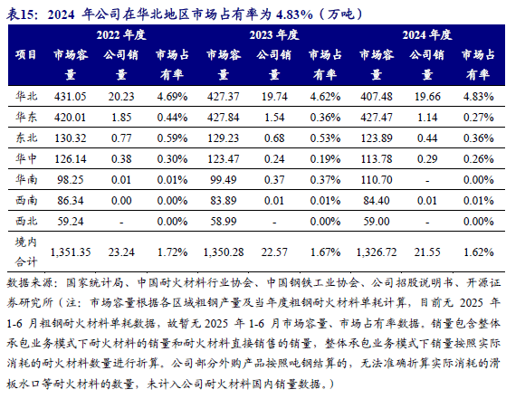 3.2、竞争格局:我国耐火材料市场分散,公司2024年华北市占率4.83%