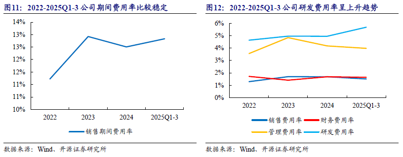 2022-2025Q1-3,公司研发费用率分别为4.64%、4.96%、4.96%和5.69%,呈上升趋势。公司注重研发投入与产品创新,致力于耐火材料产品耐高温、耐侵蚀、抗冲刷等性能的提升。公司通过持续加大研发投入、建设研发人才团队,能够保障公司在产品创新、生产工艺等方面满足客户生产需求。
