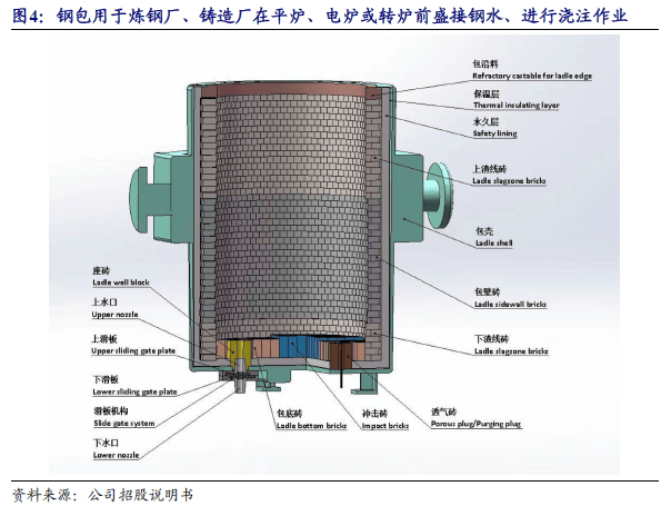 钢铁冶炼工艺流程较长,公司耐火材料整体承包服务包括钢包、中间包及铁水包。