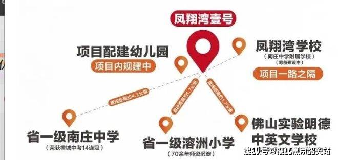 凤翔湾壹号业主子女可享受从幼儿园到中学的省一级优质教育资源。项目附近有溶州幼儿园、上元幼儿园,社区内规划有 12 班凤翔湾幼儿园(公办)。参考 2024 年学校分配,业主子女可分配到广东省一级学校溶洲小学(1951 年创办,70 余年师资沉淀,德育优秀学校),以及省一级南庄中学(初中部,1959 年创办,2008 - 2021 年连续 14 年禅城中考成绩第一,获多项荣誉,也是全国机器人进课堂实验基地)。此外,还有育贤学校、佛山实验明德中英文学校可供选择,项目一路之隔还规划有 42 班的公办九年一贯制凤翔湾学校(南庄中学附属学校,已通过环评)。售楼处电线 。