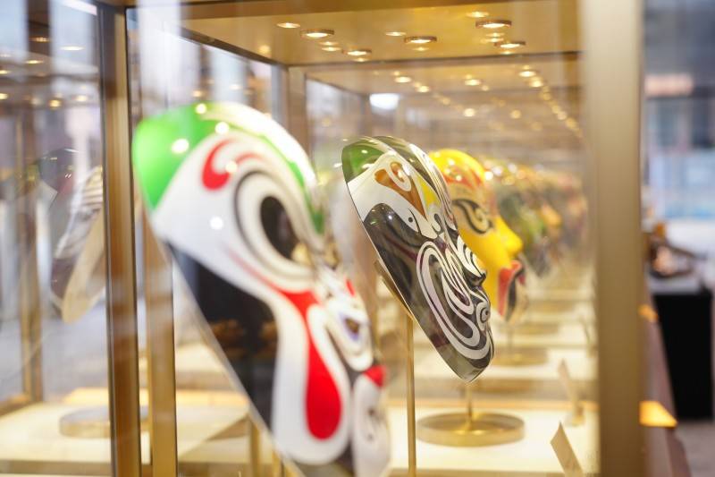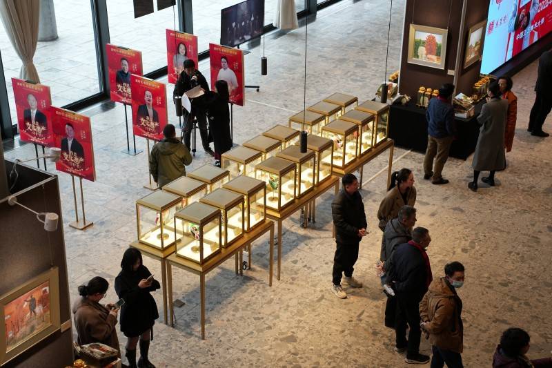 其次,是美学场景的共建。 晚会特设的“五粮文创艺术空间”,成为品牌理念的实体注解。这里呈现的“瓷上画廊”、“镶器”、“非遗脸谱”等系列作品,正是五粮文创携手顶级艺术力量,将酒器美学、陶瓷艺术与书画意境创新融合的成果。它直观宣告:五粮文创提供的,不仅是美酒,更是一种可观赏、可收藏、可传承的文化体验与生活方式。