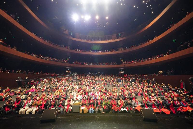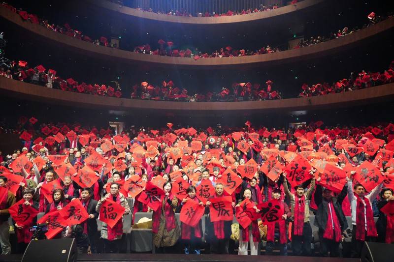 这份对守护精神的礼赞,在充满年味与温情的“送福”环节中得到延续与升华,全场千余位嘉宾观众共同举起融汇各色书风的“福”字与“马”字。伴随着“马上有福”的齐声祝愿响彻大厅,这份源自瓷都的新春暖意与文化情感,让守护与传承的美好寓意得以延续,深入人心。